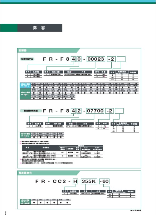三菱變頻器F840系列選型資料見附件